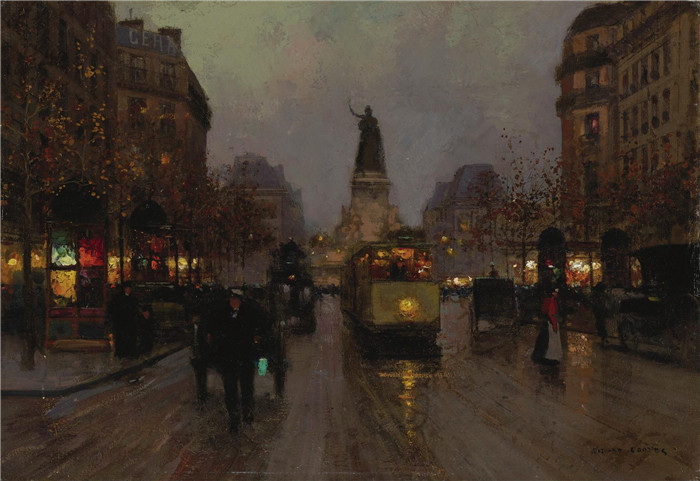 简介: 科尔特斯 (edouard leon cortes)作品-共和国广场在黄昏Площадь Республики в сумерках (38.1 х 54.9 см) (масло, холст) (Частная коллекция)