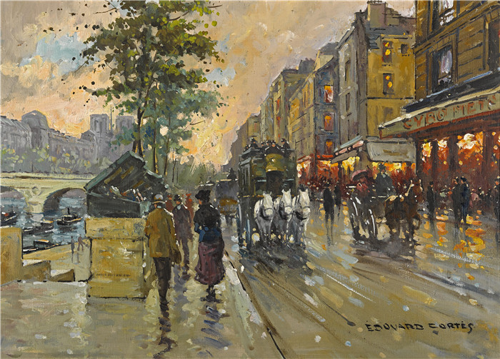 简介: 科尔特斯 (edouard leon cortes)作品-塞纳河畔Набережная Сены (33 x 45.7 см) (масло, холст) (Частная коллекция)