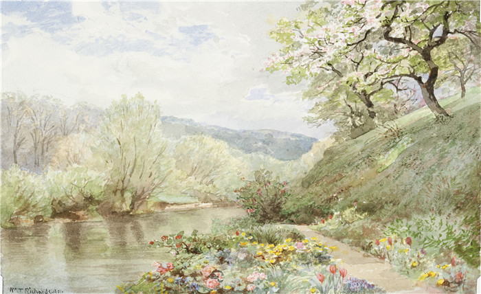 简介: 威廉·特罗斯特·理查兹(William Trost Richards)作品-菲迪莉娅·布里奇斯花园Fidelia Bridges Garden HR