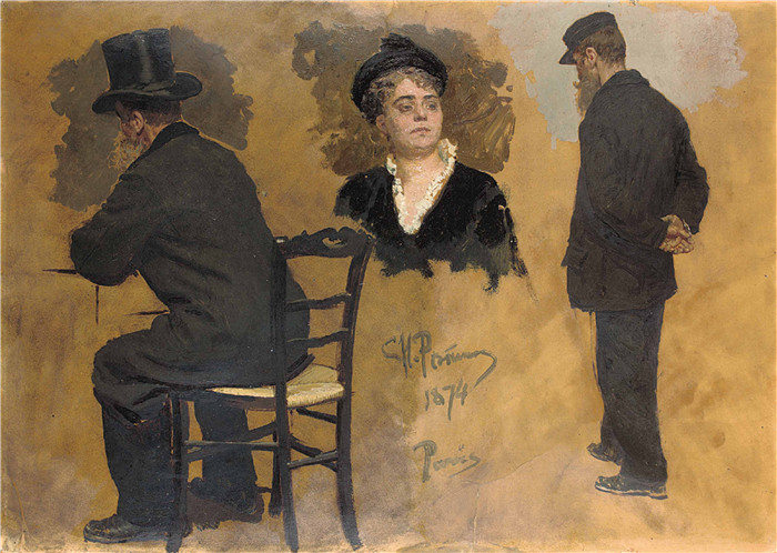 简介: 列宾(Ilya Repin)高清作品-巴黎咖啡馆study for a parisian cafe two studies for arthur meyer and
