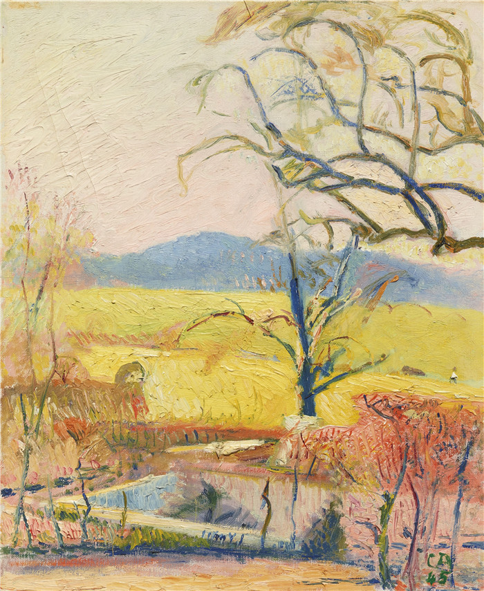 简介: 库诺·阿米埃特(Cuno Amiet)高清作品-鲍姆的幻想Vorfriihling mit Baum (1945)