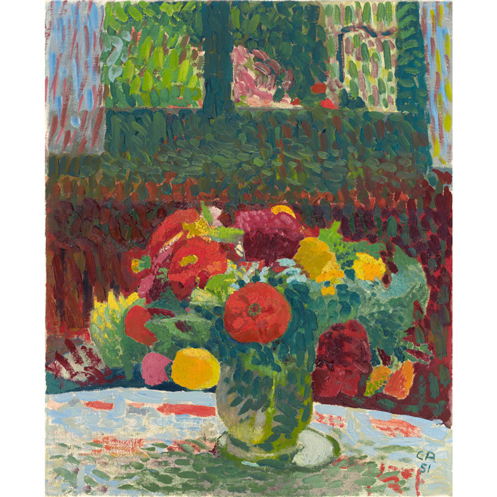 简介: 库诺·阿米埃特(Cuno Amiet)高清作品-彩色百日菊花束MULTICOLOURED ZINNIA BOUQUET, 1951