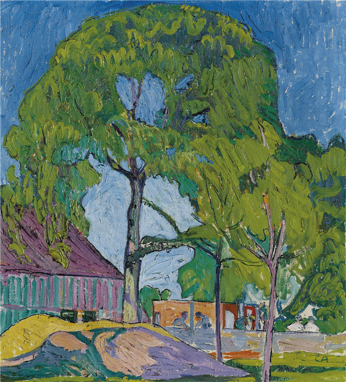 简介: 库诺·阿米埃特(Cuno Amiet)高清作品-房屋建筑Hausbau II, 1908