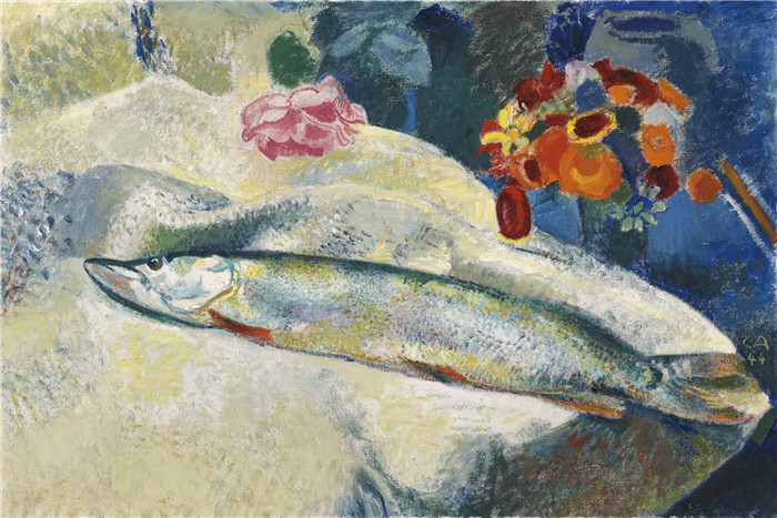 简介: 库诺·阿米埃特(Cuno Amiet)高清作品-静物鱼STILLLEBEN MIT HECHT, 1944
