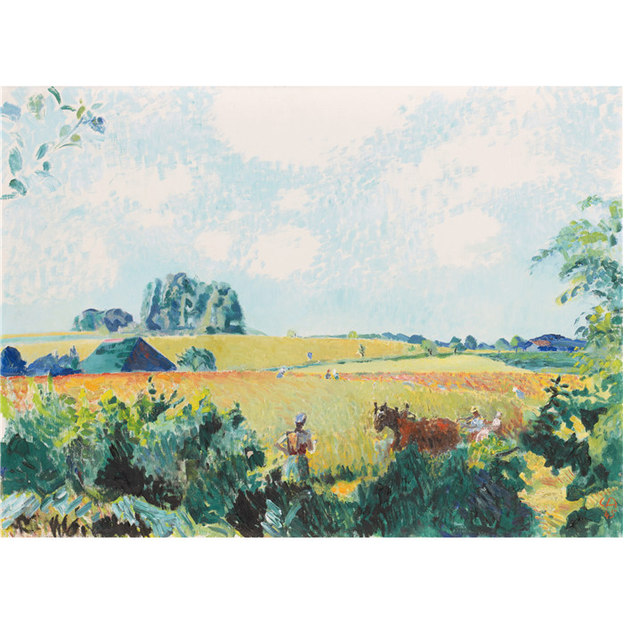 简介: 库诺·阿米埃特(Cuno Amiet)高清作品-收获地 HARVEST FIELD, 1945