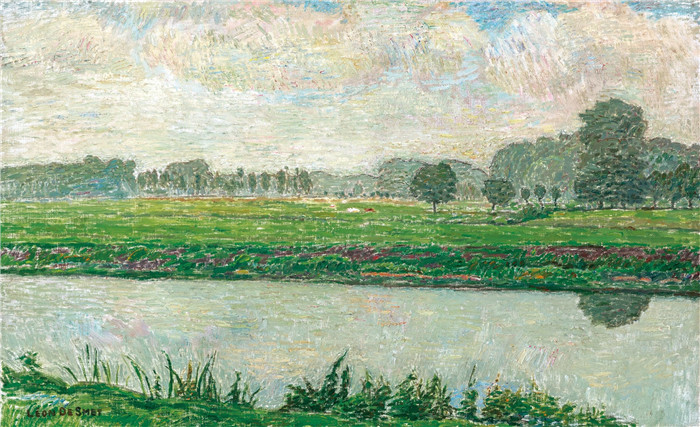 简介: 莱昂·德·斯梅特(Léonde Smet)作品-河的景色A view of the river Lys