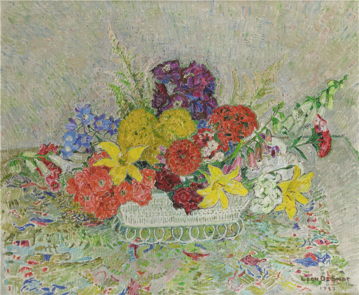 简介: 莱昂·德·斯梅特(Léonde Smet)作品-花瓶Vase of Flowers, 1952