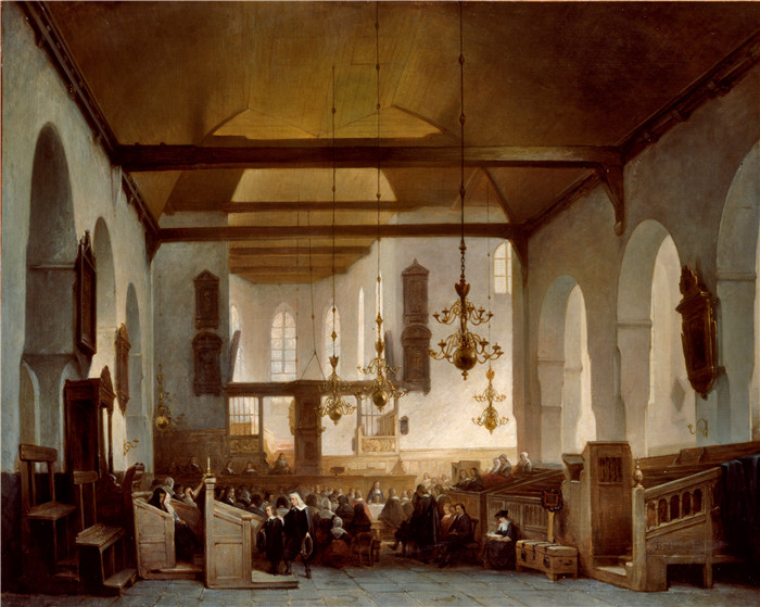 简介: 约翰内斯·博斯布姆(Johannes Bosboom) 画作-乌得勒支 Geertekerk 的内部与圣餐庆祝活动