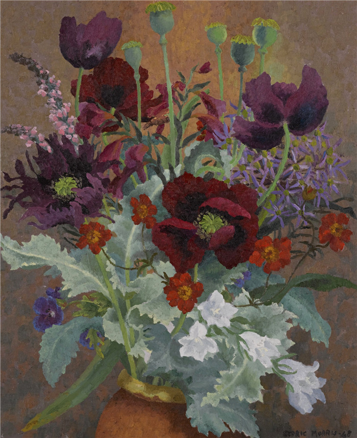 简介: 塞德里克·莫里斯(Cedric Morris)-静物,插着夏日花朵的花瓶颈Still Life, Neck of Vase with Summer Flowers, 1948