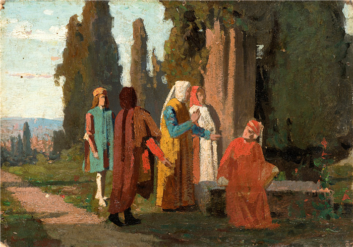 简介: 费德里科·法鲁菲尼 (Federico Faruffini) 的画作-Federico_Faruffini_(Attribuito)_-_Incontro_tra_letterati(意大利)