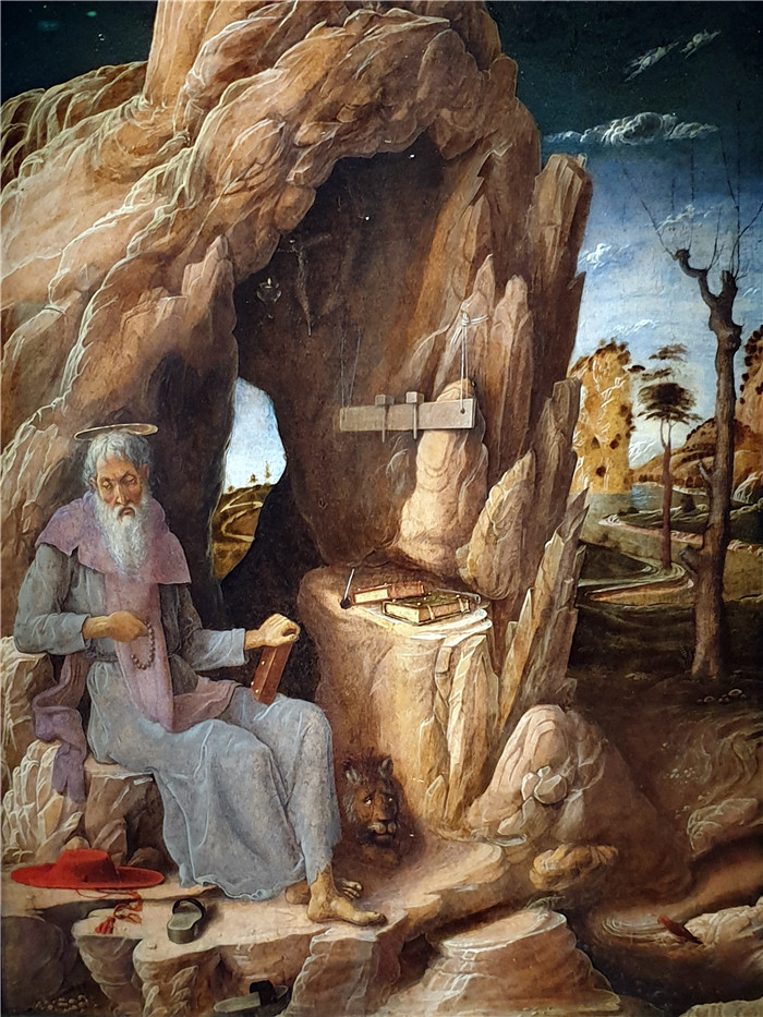 简介: 安德里亚·曼特尼亚(Andrea Mantegna)画作-沙漠中的圣杰罗尼姆1449 Der Heilige Hieronymus in der Wüste