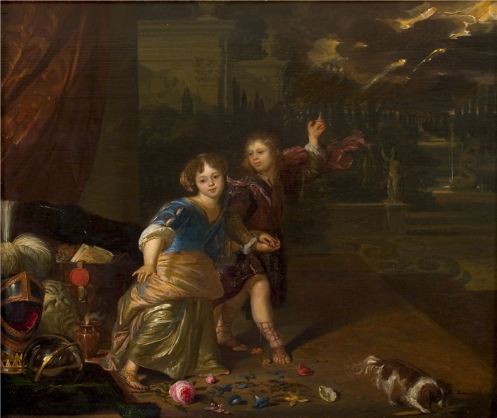 简介: 卡雷尔·德摩尔 ( Carel de Moor)作品-两个孩子的寓言肖像Allegorisch portret van twee kinderen