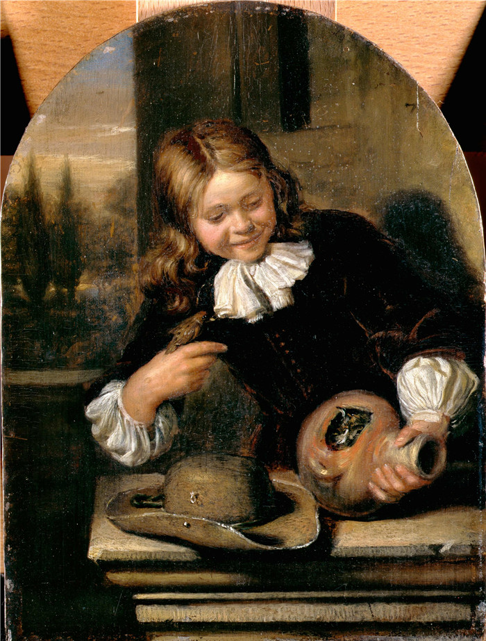简介: 卡雷尔·德摩尔 ( Carel de Moor)作品-拿着旗子和鸟巢的男孩Boy with a Flagon and a Bird's Nest