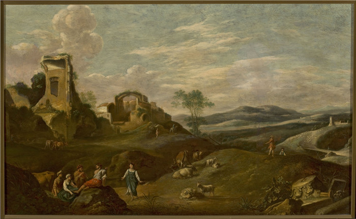 简介: 科内利斯·范·波伦伯奇(Cornelis van Poelenburch)的画作-意大利景观与废墟Italian landscape with ruins - M.Ob.1683