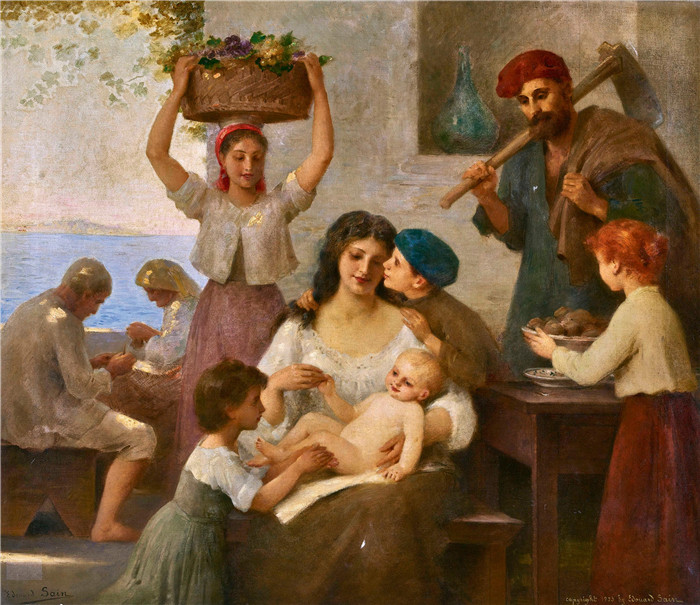 简介: 爱德华·亚历山大·桑(Édouard Alexandre Sain)的绘画-家族The family (1903), reproduction of the original by Édouard Alexandre Sain