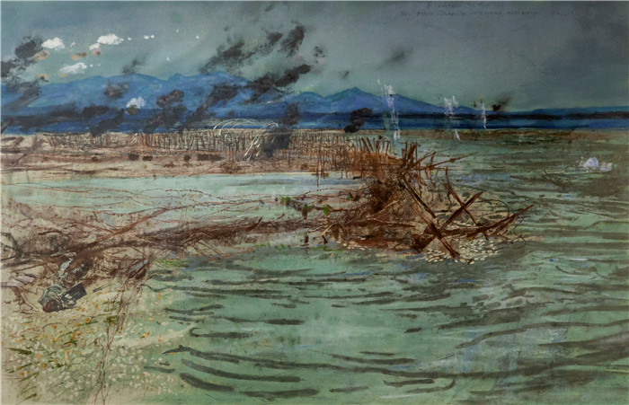 简介: 朱利奥·阿里斯蒂德·萨尔托里奥(Giulio Aristide Sartorio)的绘画-奥地利进攻期间的皮亚韦河上On the Piave River during an Austrian offensive (1918), by Giulio Aristide Sartorio