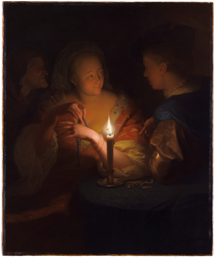 简介: 戈弗里德·沙尔肯(Godefridus Schalcken)画作-浪子回头Lovers (Prodigal Son), Godefridus Schalcken, 1692-1706, oil on canvas, 76.5 by 63.8 cm, The Leiden Collection