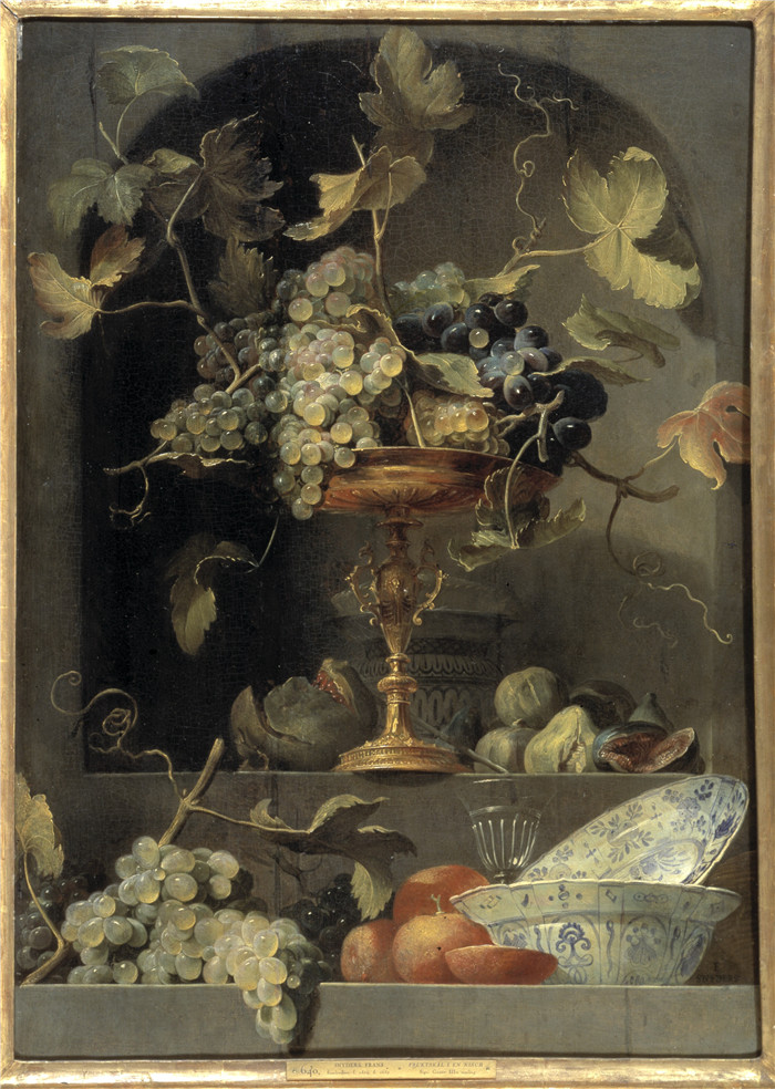 简介: 弗兰斯·斯奈德斯(Frans Snyders)油画-壁龛中的水果碗静物画Still Life with Fruit Bowl in a Niche (Frans Snyders)