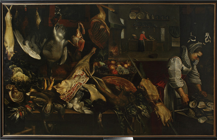 简介: 弗兰斯·斯奈德斯(Frans Snyders)油画-厨房内部 Kitchen interior