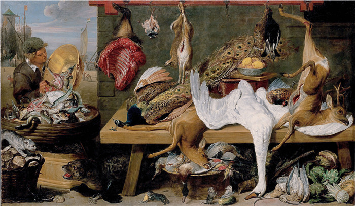 简介: 弗兰斯·斯奈德斯(Frans Snyders)油画-码头市场场景 Market Scene on a Quay