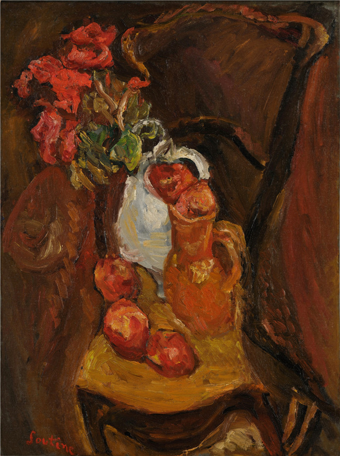 简介: 柴姆苏丁(Chaïm Soutine)高清作品-苹果、锅、椅子和花束Pommes, pot, chaise et bouquet