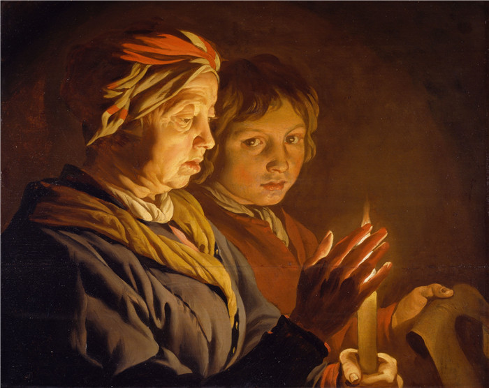 简介: 马蒂亚斯·斯托姆(Matthias Stom)油画-烛光下的一个老妇人和一个男孩An old Woman and a Boy by Candlelight