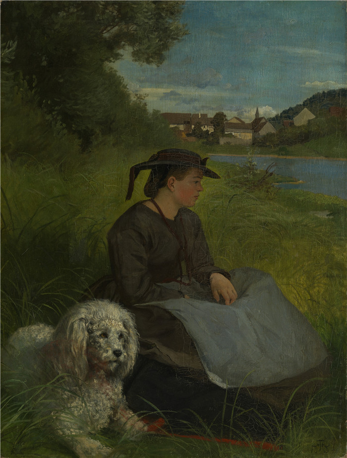 简介: 汉斯·托马(Hans Thoma)作品-阿加特与白狗Agathe mit weißem Hund (1869)