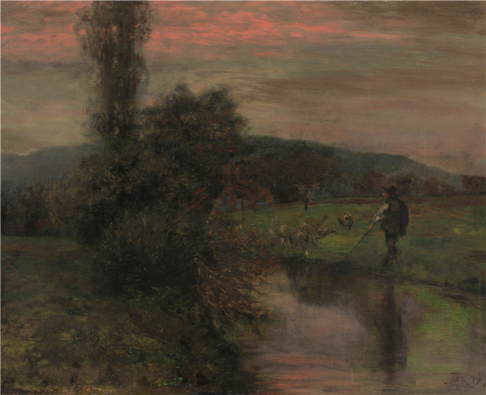 简介: 汉斯·托马(Hans Thoma)作品-傍晚景色Abendlandschaft 1879