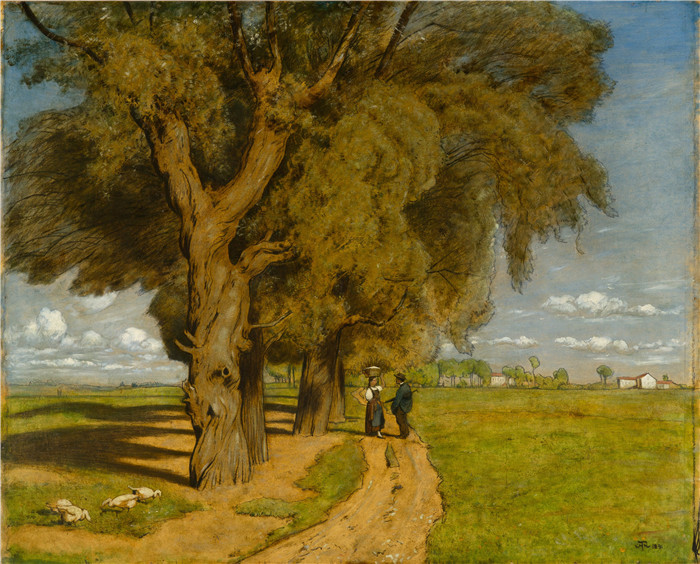 简介: 汉斯·托马(Hans Thoma)作品-卡尔斯鲁厄的风景Landschaft bei Karlsruhe (1891)