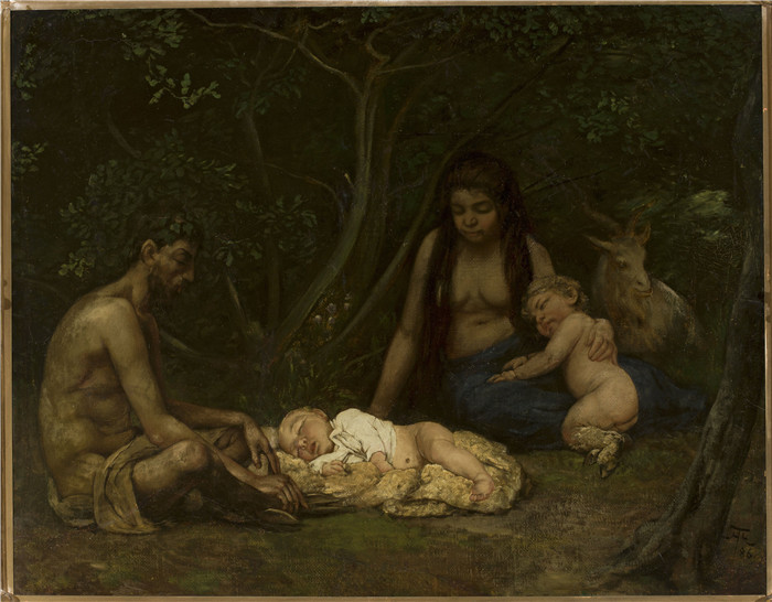 简介: 汉斯·托马(Hans Thoma)作品-山羊神族Satyr's family (bringing up of Zeus)