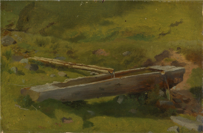 简介: 汉斯·托马(Hans Thoma)作品-树干作为喷泉池 Baumstamm als Brunnentrog