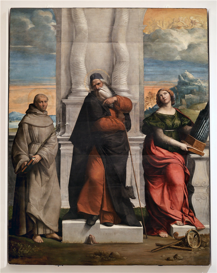 简介: 本韦努托·提西(Benvenuto Tisi)作品-圣安东尼阿巴特在圣安东尼奥·达·帕多瓦和圣塞西莉亚之间 Sant'Antonio Abate tra Sant'Antonio da Padova e Santa Cecilia, 1523 -FG
