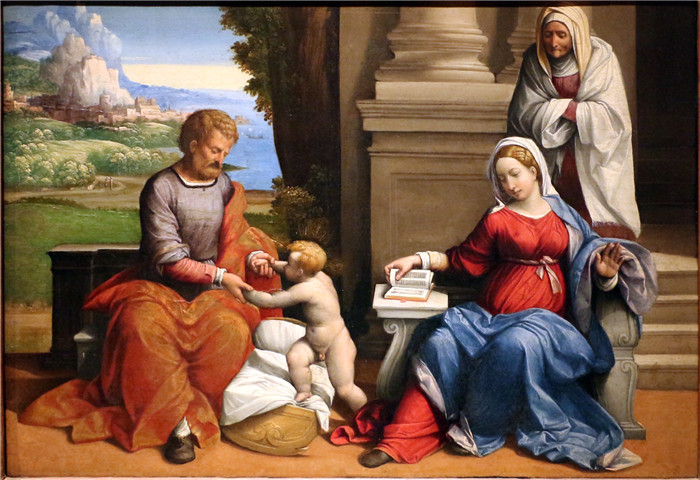 简介: 本韦努托·提西(Benvenuto Tisi)作品-圣家与圣安妮sacra famiglia con sant'anna, 1530 ca
