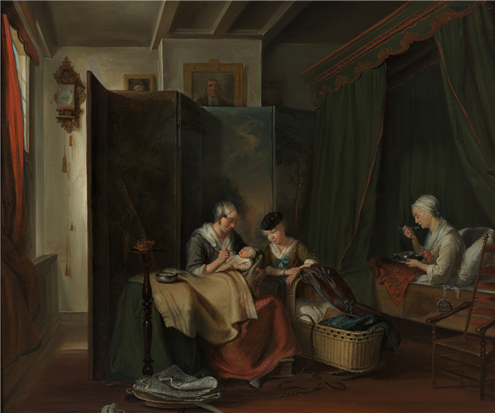 简介: 科内利斯·特罗斯特(Cornelis Troost)的画作-荷兰式产房Hollandse kraamkamer - 1871 (OK)