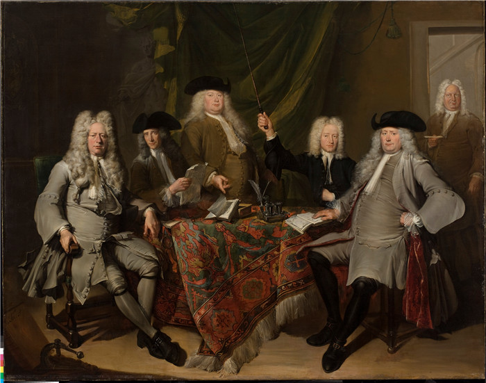 简介: 科内利斯·特罗斯特(Cornelis Troost)的画作-医学学院的检查员De inspecteurs van het Collegium Medicum