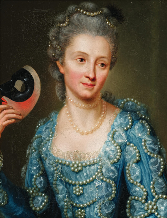 简介: 约翰·海因里希·蒂施拜因(Johann Heinrich Tischbein)的绘画-戴面具的女士肖像Portrait of a lady with a mask