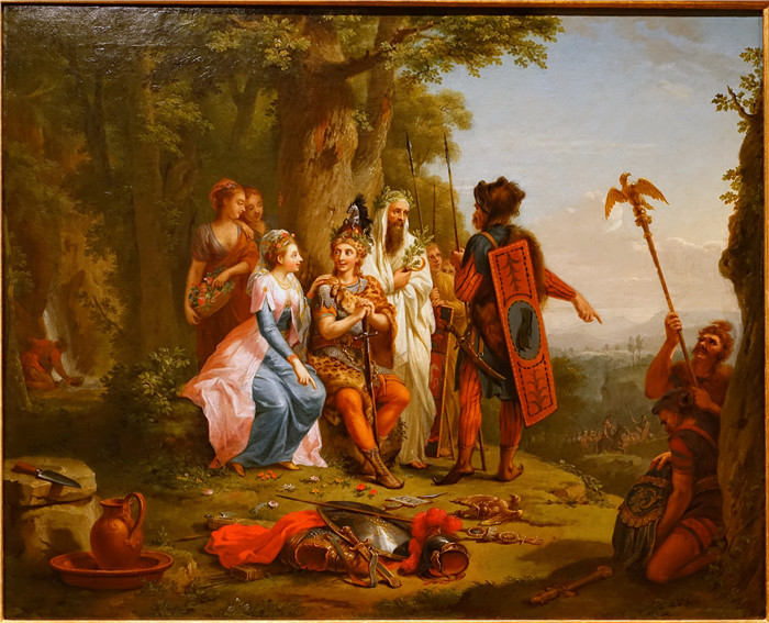 简介: 约翰·海因里希·蒂施拜因(Johann Heinrich Tischbein)的绘画-赫尔曼和图兹妮达加冕Hermann and Thusnelda Enthroned, the elder, Kassel, 1782