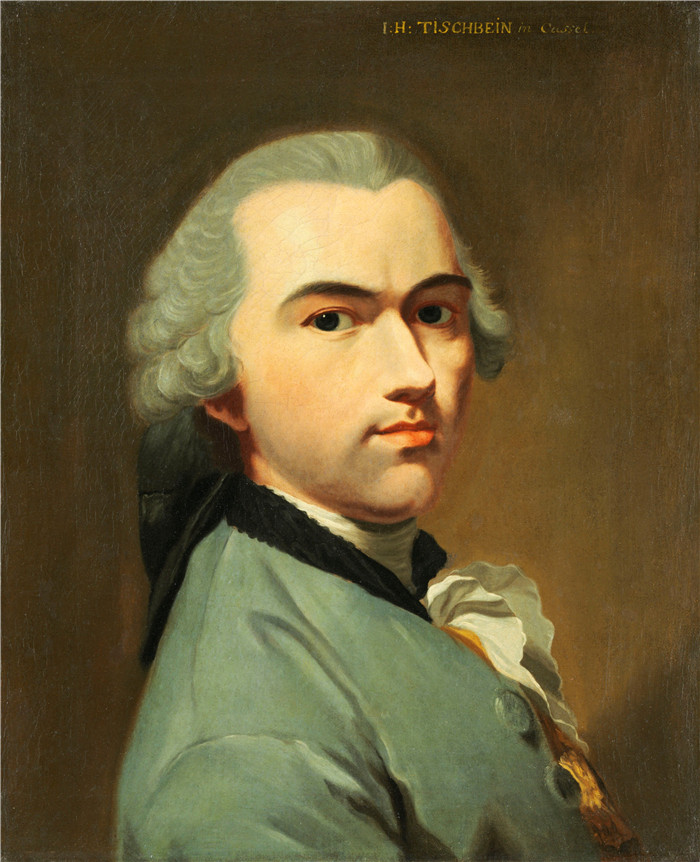 简介: 约翰·海因里希·蒂施拜因(Johann Heinrich Tischbein)的绘画-自画像Selbstbildnis (vor 1754)