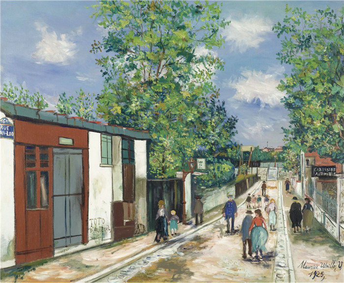 简介: 莫里斯·乌特里略(Maurice Utrillo)的绘画-奥特伊的范卢街Van-Loo Street at Auteuil, 1925