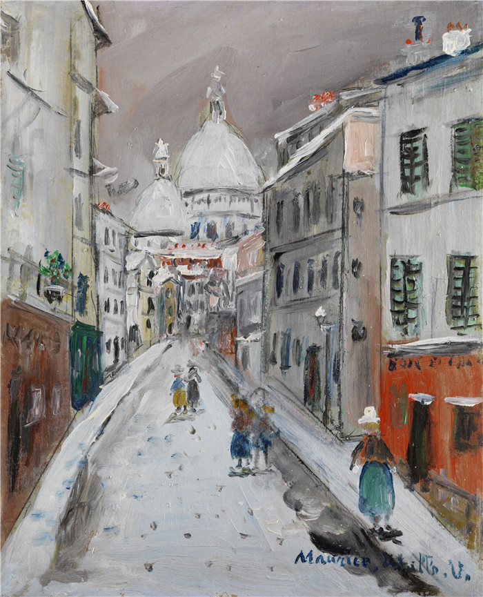 简介: 莫里斯·乌特里略(Maurice Utrillo)的绘画-巴黎街,圣心教堂景观Paris Street, View on Sacre-Coeur
