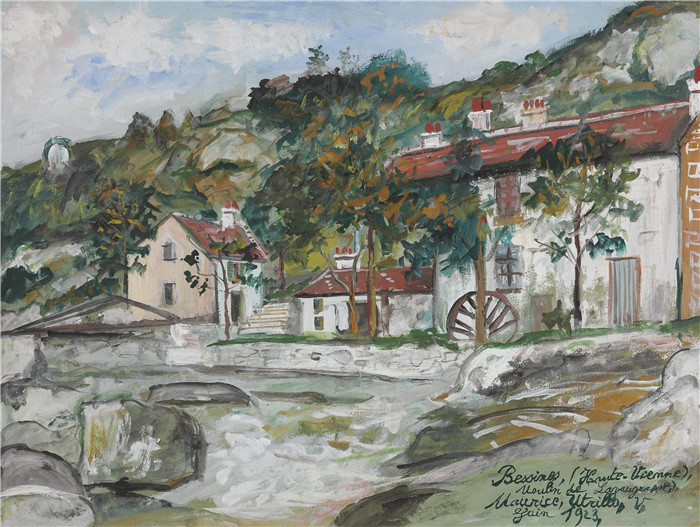 简介: 莫里斯·乌特里略(Maurice Utrillo)的绘画-贝辛(上维也纳),拉沃格拉斯磨坊Bessines (Haute-Vienne), Moulin de Lavaugrasse, 1923
