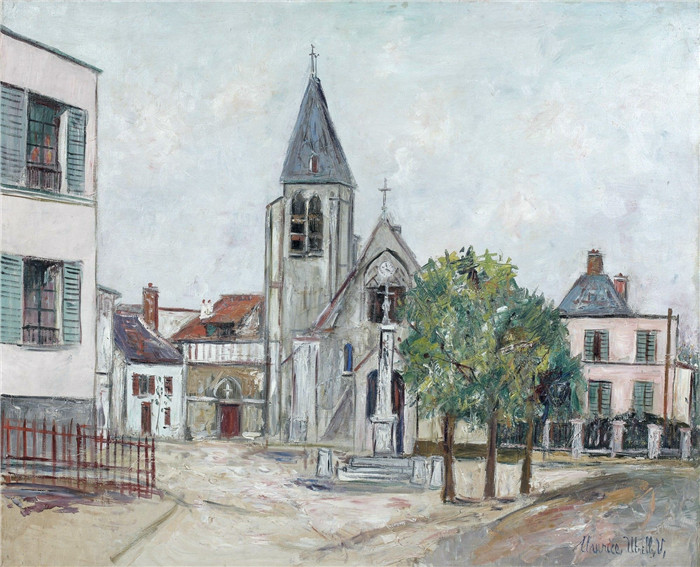 简介: 莫里斯·乌特里略(Maurice Utrillo)的绘画-比夫勒教堂The Church of Bievres, 1934