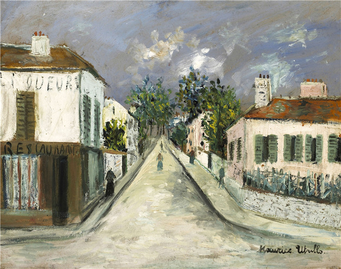 简介: 莫里斯·乌特里略(Maurice Utrillo)的绘画-村街Village Street, 1915