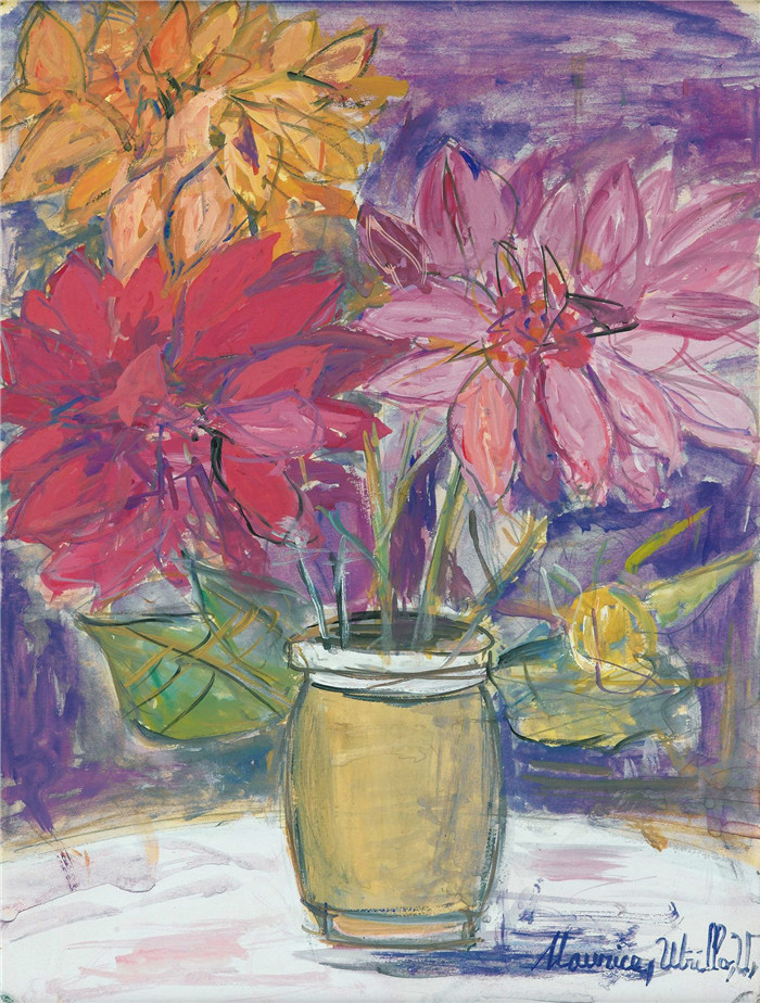 简介: 莫里斯·乌特里略(Maurice Utrillo)的绘画-达里亚斯Dahlias, 1935