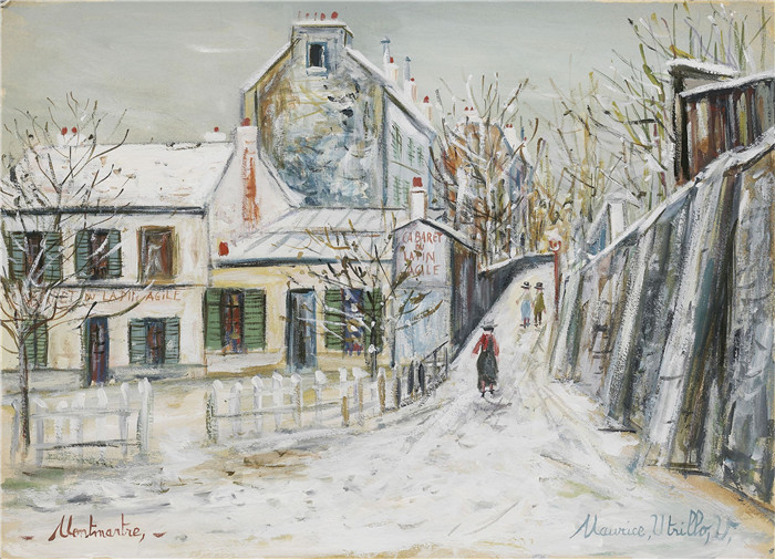 简介: 莫里斯·乌特里略(Maurice Utrillo)的绘画-冬日的拉普安敏捷咖啡馆夜总会The Cabaret of Lapin Agile in Winter
