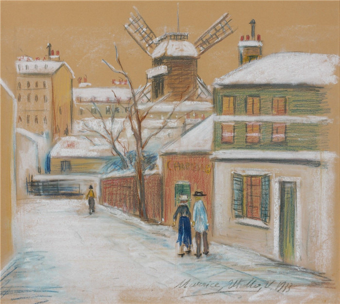 简介: 莫里斯·乌特里略(Maurice Utrillo)的绘画-加莱特磨坊,雪Le Moulin de la Galette, Snow Time, 1933