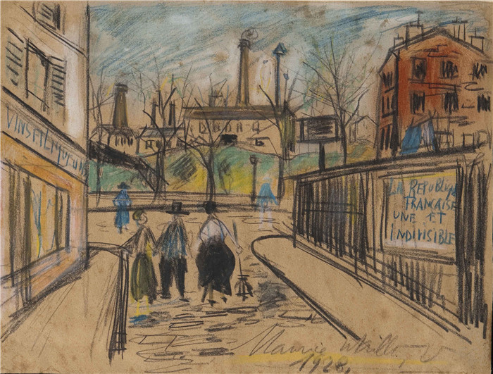 简介: 莫里斯·乌特里略(Maurice Utrillo)的绘画-街景Street Scene, 1928