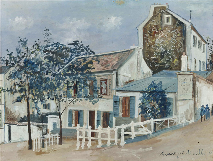 简介: 莫里斯·乌特里略(Maurice Utrillo)的绘画-拉平·阿居乐歌舞厅The Cabaret of Lapin Agile, 1916