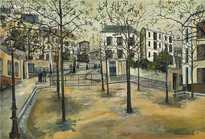 简介: 莫里斯·乌特里略(Maurice Utrillo)的绘画-拉维尼昂广场Ravignan Square, 1916