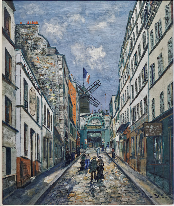 简介: 莫里斯·乌特里略(Maurice Utrillo)的绘画-勒皮克街,小磨坊Rue Lepic, le Moulin de la galette